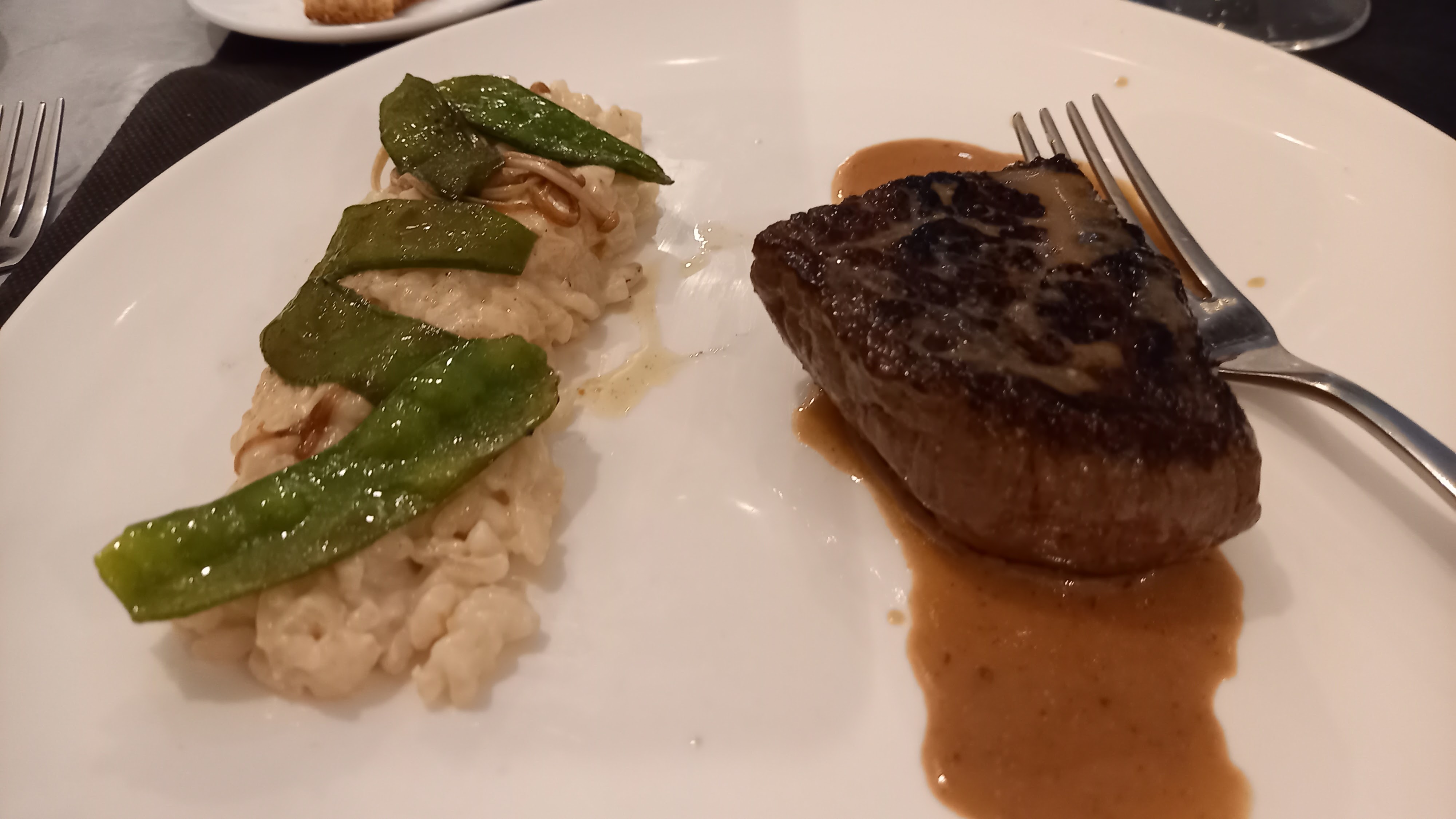 Plus chic que bon. Foie gras un peu farineux en bouche et peu goûteux. L' agneau un peu sec en bouche et peu goûteux.