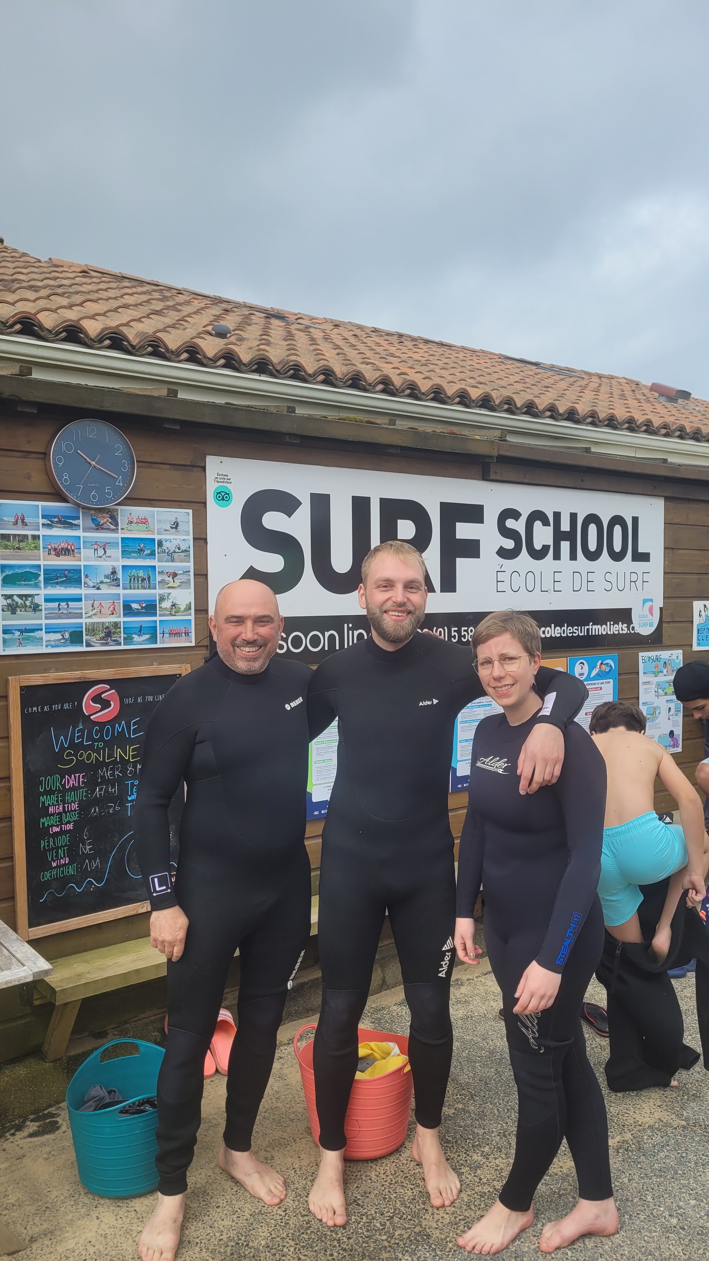 Voilà 3 ans que chaque été nous prenons 5 jours de cours de surf chez Soonline. Et chaque année c'est un plaisir de les retrouver. Un grand merci à vous pour votre accueil et votre bienveillance. Toute l'équipe est aux petits soins pour nous. Merci tout particulier à Joke (j'espère que je l'écris bien) et Thomas pour sa pédagogie. Vous êtes au top.