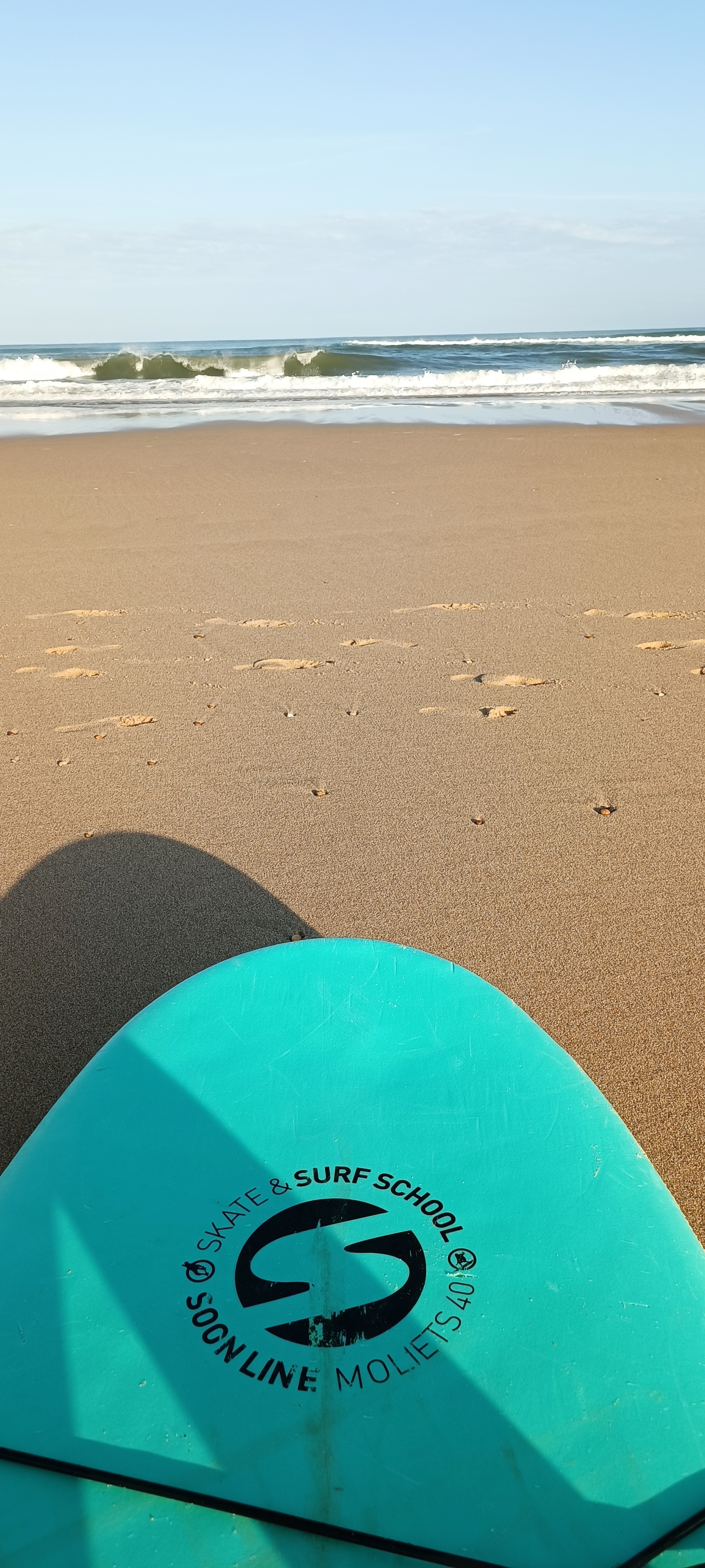 2 séances individuelles, moniteur George. Sympa et pédagoge. Bon choix de planche, pas de délire a essayer de passer la barre dans un océanassez fort, on a surfé dans la reforme, j'ai amélioré ma rame et aussi ma prise de vague.