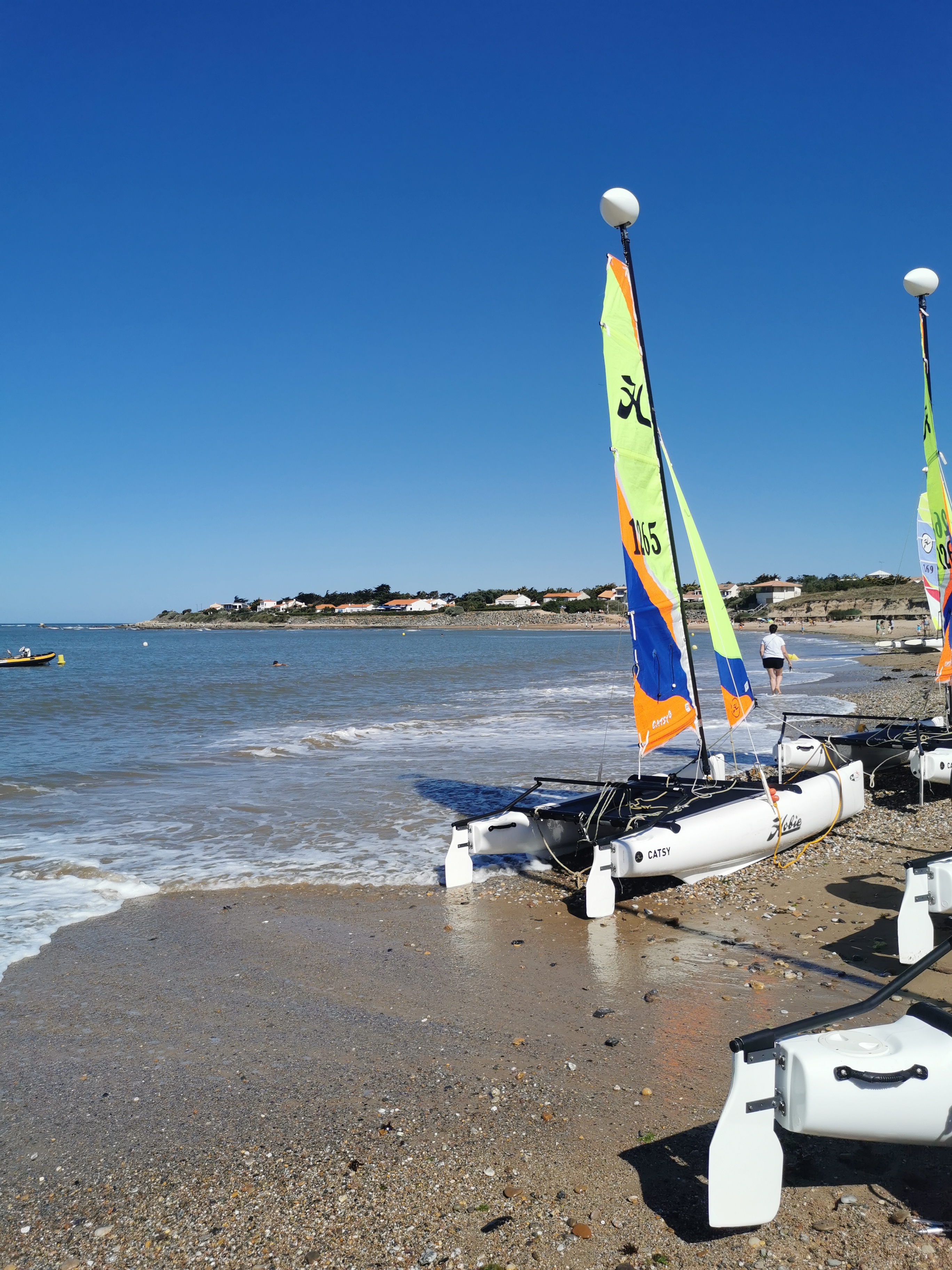 Premier stage (débutant) de catamaran et sûrement pas le dernier. Idéalement placé sur cette plage, où se trouve un restaurant assez sympa, l'école de voile est facilement accessible (parking voitures et surtout vélos). Équipe accueillante et compétente, vous y trouverez des cours de plusieurs activités nautiques (pour tous les âges) et de la location de matériel. Malgré le peu de vent sur la semaine, très bon stage, qui donne envie de continuer et d'essayer le niveau supérieur. Merci à Kim, Victor, Marius et Kélian pour l'encadrement sportif et à très bientôt pour le cours initié (et le vent !)