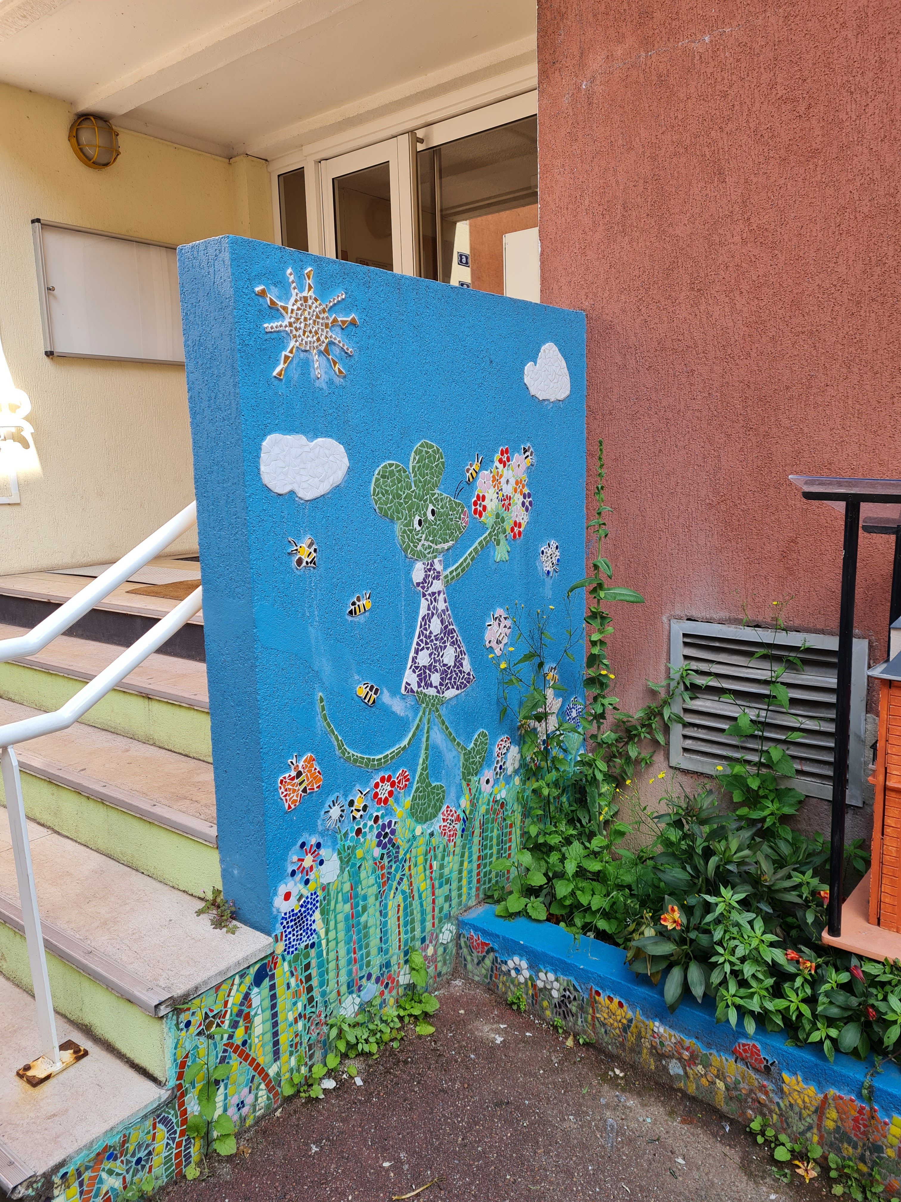 ⚠️Les lieux sont pas sécurisés , la hauteur des muret est bien trop basse et très accessible facilement par un enfant , c'est d'ailleurs le cas de visu , suffit qu'il monte et s'accroche sur la rambarde pour atteindre le sommet du muret , même chose pour les grilles marron . Tout comme les tableaux qui sont sur c'est baron marron qui ne sont pas fermés. Également les marquages au sol qui devraient être notifié par exemple un stop sur le côté gauche et droite de la barrière à l'extérieur avec une peinture différente à 1 m de chaque côté de distance avec la barrière , j'ai remarqué ( sur l'avant dernière photo ) était pas approprié pour ce qui est la peinture qui se trouve sur la route ou le bus sort du parking à moins que ce soit là que l'école rentre dans le bus pour une sortie mais dans tous les cas il y a un manque aussi de marquage au sol.
