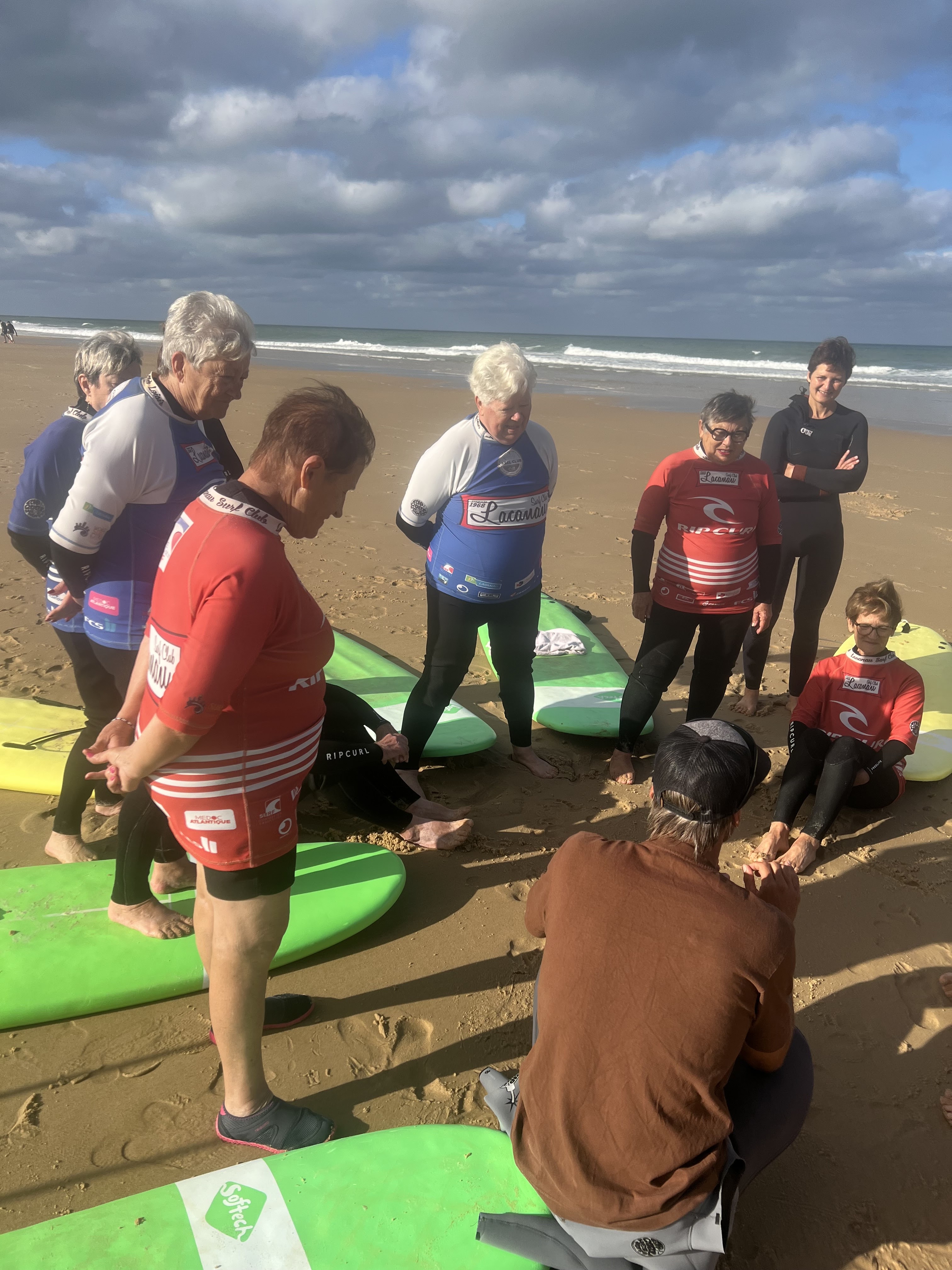 Un grand merci au club qui a permis à 9 personnes de 65 à 80 ans de s'initier au surf, dans le cadre d'ateliers de prévention des chutes. Accompagnés de praticiens de la CPTS Médoc-Sud, tout le monde s'est mis à l'eau et a pris beaucoup de plaisir. Une belle expérience à renouveler !