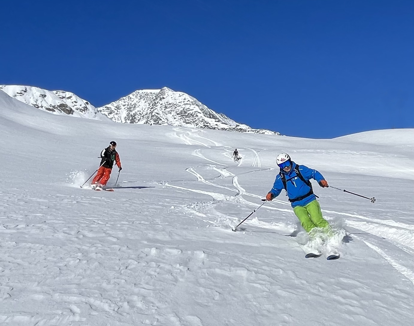 Excellente expérience et bon rapport qualité-prix lors de la réservation via SCGB - Davide, notre guide était sympathique, professionnel et en excellente compagnie. et surtout, il a constamment trouvé des réserves de poudre intactes. Plus important encore, à l'heure du déjeuner, il nous a également montré où trouver les meilleurs croque monsieur et tarte aux myrtilles (et au meilleur rapport qualité-prix) de l'Espace Killy ! En prime, Davide avait pris des vidéos et des photos de notre groupe tout au long de la journée pour nous offrir à tous un souvenir impérissable d'une journée mémorable.