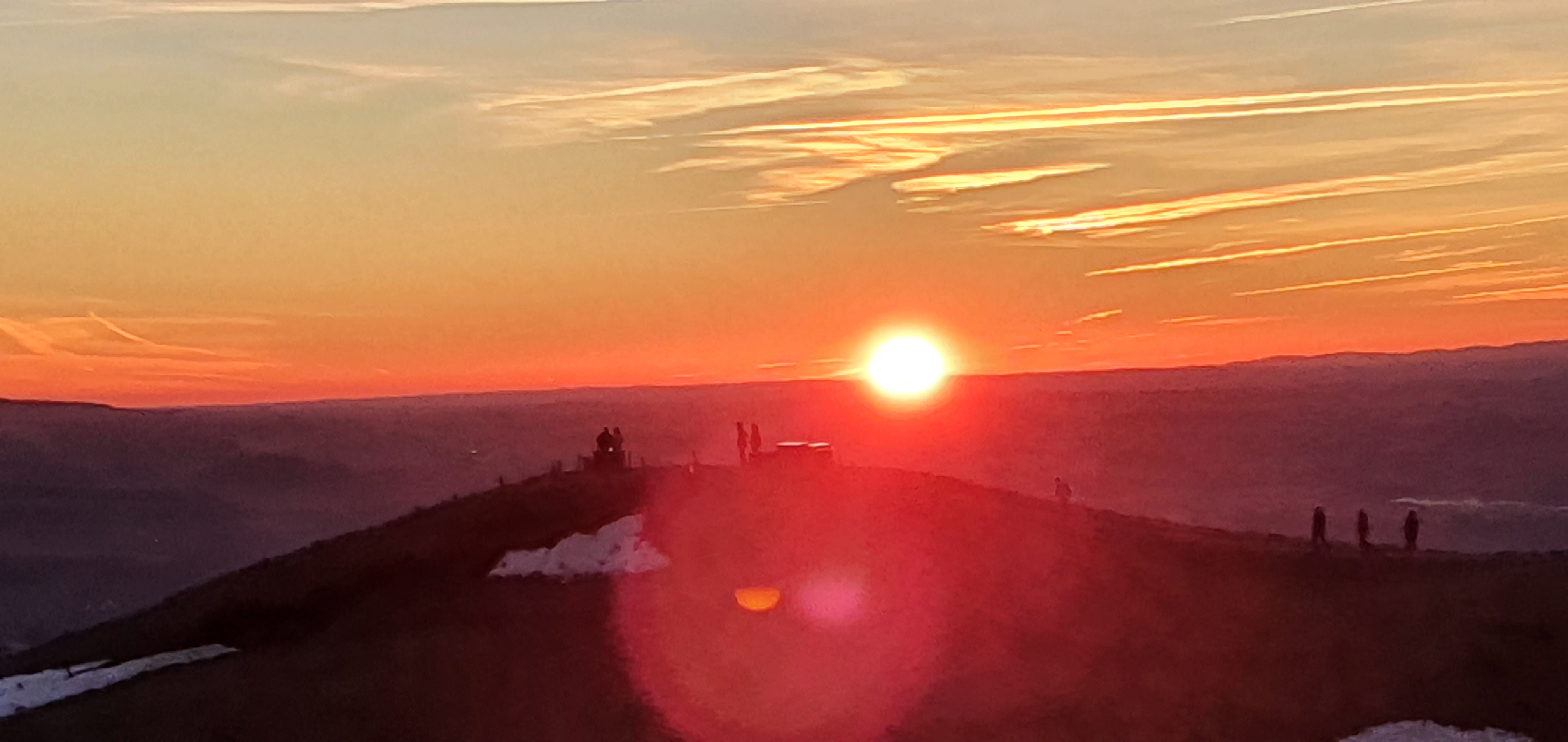 Au dessus de la mer de nuages, notre géant tutélaire au soleil couchant. Mais gare aux glissades, et pas seulement sur la patinoire de Noël : neige gelée 😁 !